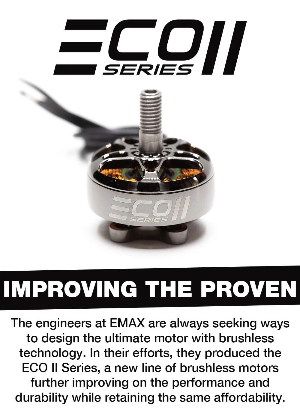 The ECO II Series marks the next evolution in affordable brushless motor technology, bringing in a new era of performance for everyone.
